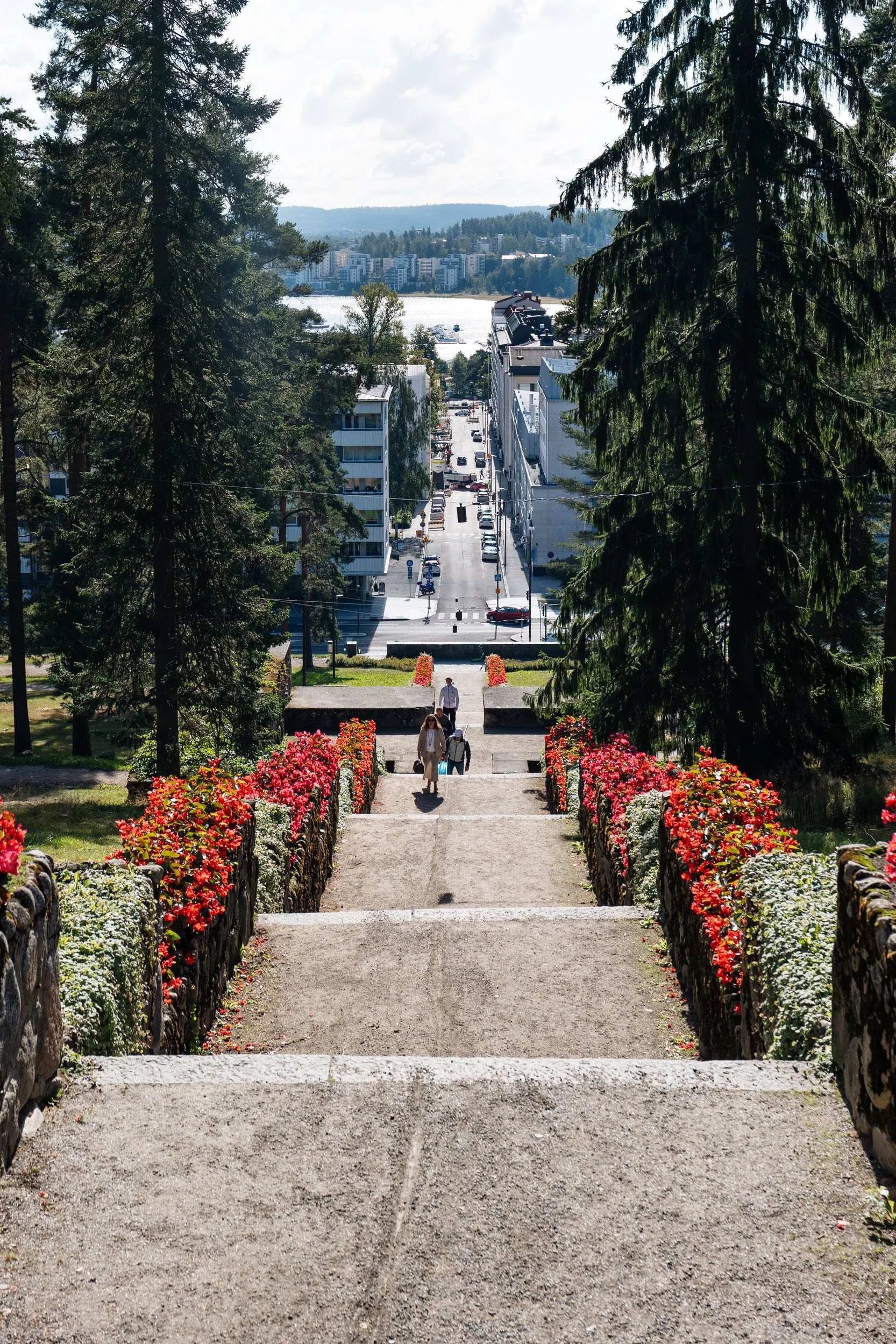 Wenn ihr Jyväskylä von oben sehen möchtet, solltet ihr unbedingt auf den Harju-Bergrücken steigen – eine bewaldete Anhöhe direkt hinter dem Stadtzentrum. Über die steilen „Harju-Treppen“ gelangt man hinauf zu einem der beliebtesten Aussichtspunkte der Stadt. Von dort hat man einen wunderschönen Blick über die Dächer von Jyväskylä bis hin zum See Jyväsjärvi. Wer noch höher hinaus will, kann oben den Aussichtsturm besuchen.